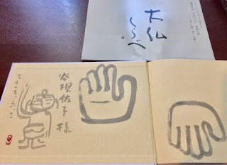 当日は、松田さんもいらっしゃって、嬉しいことに、誕生仏のイラストと名前を書いていただきました。